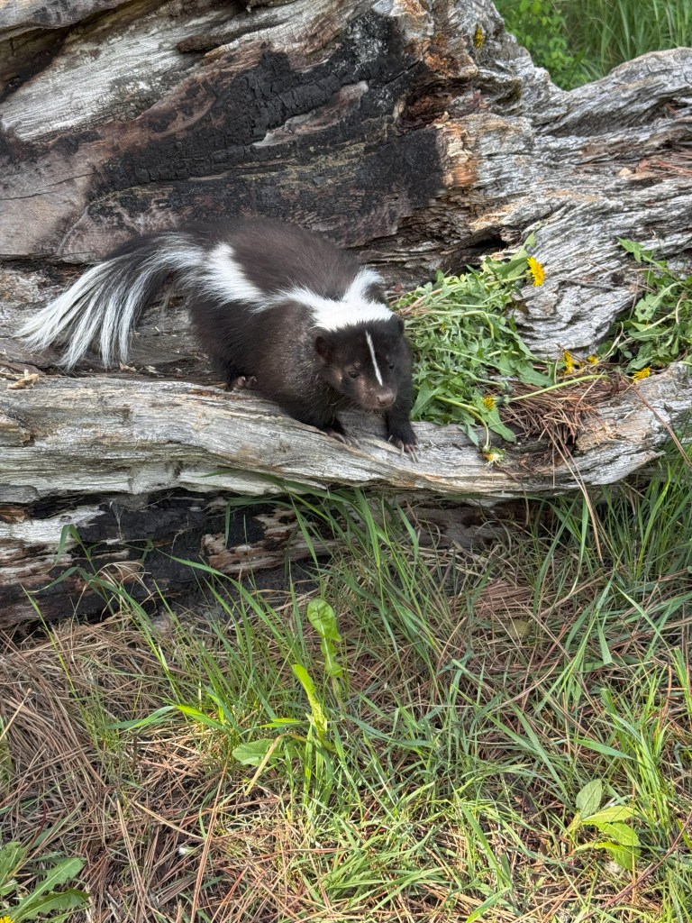 Our skunk sessions take place near brushy areas and open spots on the ranch, simulating their natural habitat. Photographers can capture them foraging, exploring, or simply pausing to look at the camera, with backdrops that highlight their distinctive markings. The setting is designed to provide clear views and safe interactions while maintaining a natural environment.