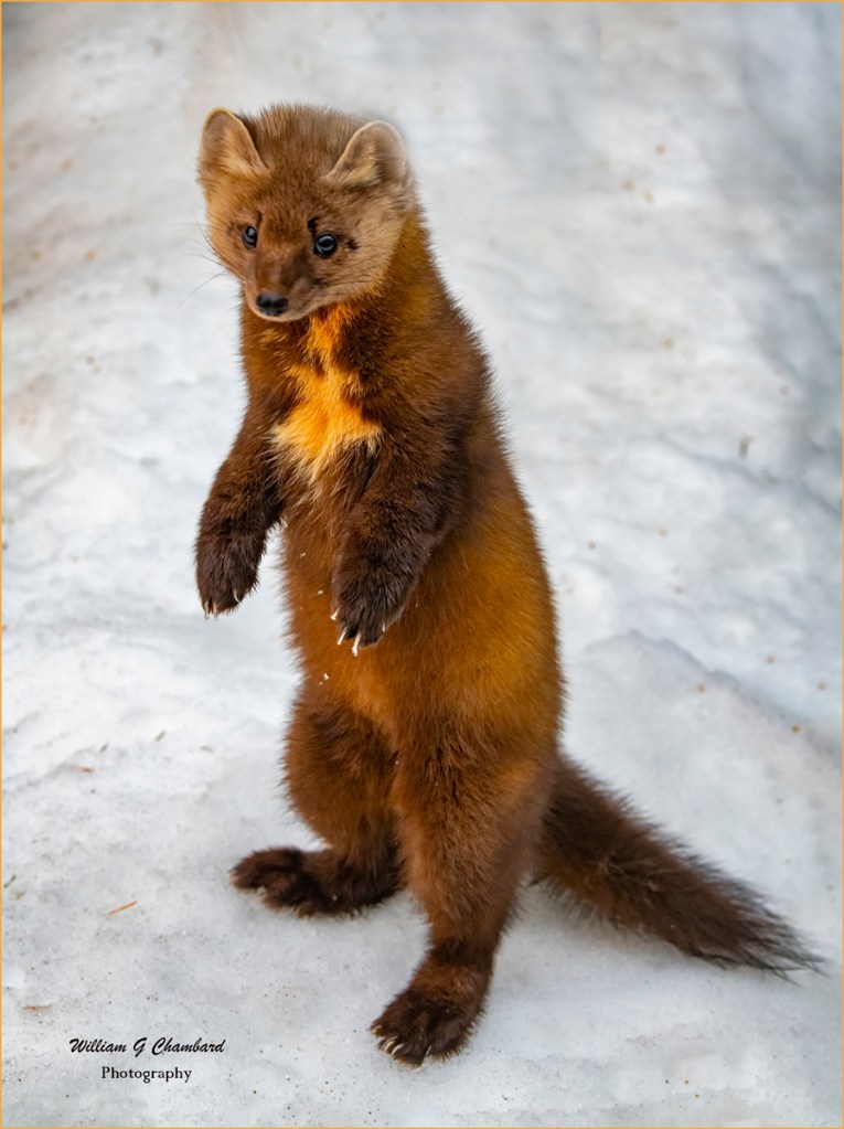 Martens should be photographed throughout the year to capture the variations in coat color and thickness. Late spring/early summer baby sessions may feature kits. Winter provides an opportunity to capture images on snow.